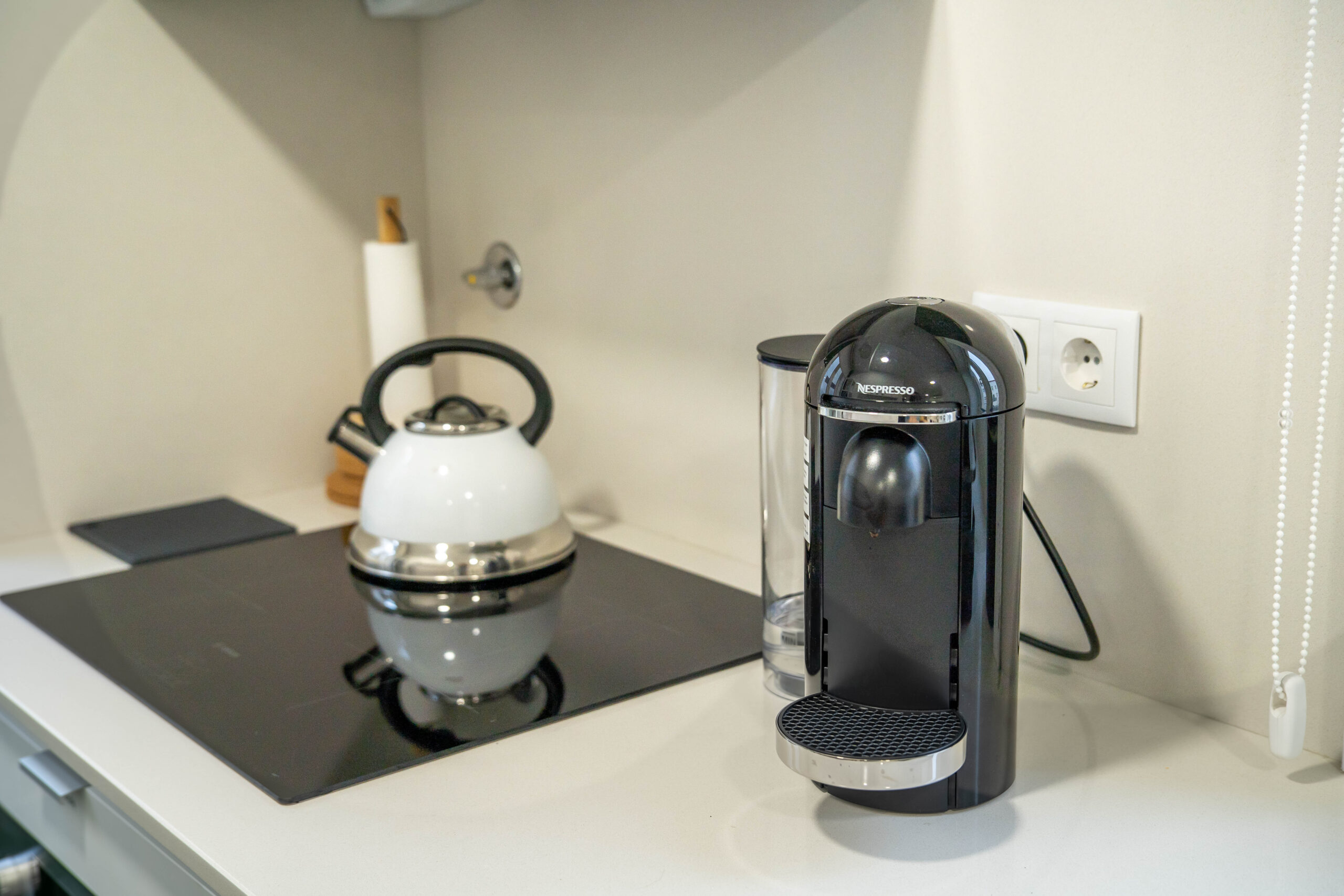 - Fully equipped kitchen with coffee machine, kettle, and cooking essentials